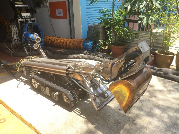 - ROBOT IS CAPABLE OF OPERATING WHILE TANK IS ONLINE - REMOVING SLUDGE FROM THE BOTTOM OF THE TANK AND AT CONFINED SPACES SUCH AS COOLING TOWER WATER BASIN, TUNNER, LIVE FIRE WATER TANK, WATER TANK...ETC.